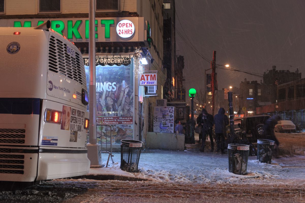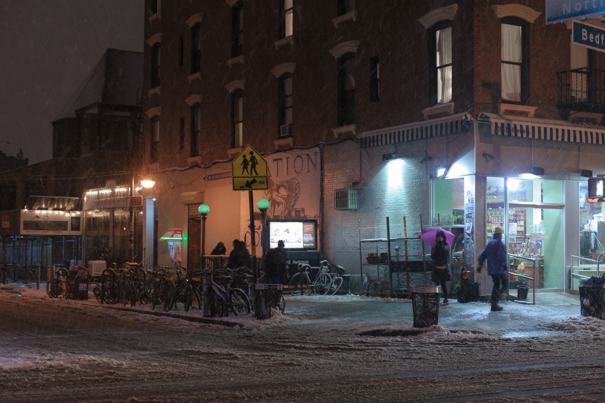 Saturday, February 9, 2013 at 1:20 AM Half of these images are prior to dinner with Jack and friends, half are after I went stumbling home soaked in bourbon and weighed down by ribs. On the topic of Nemo NYC Blizzards Snow Williamsburg Fire at B'nai Adath Kol Beth Yisrael J Train Backup Friday Night, Bedford Ave Supervising Couple Waiting on Marcy Ave Canal Street Sitters